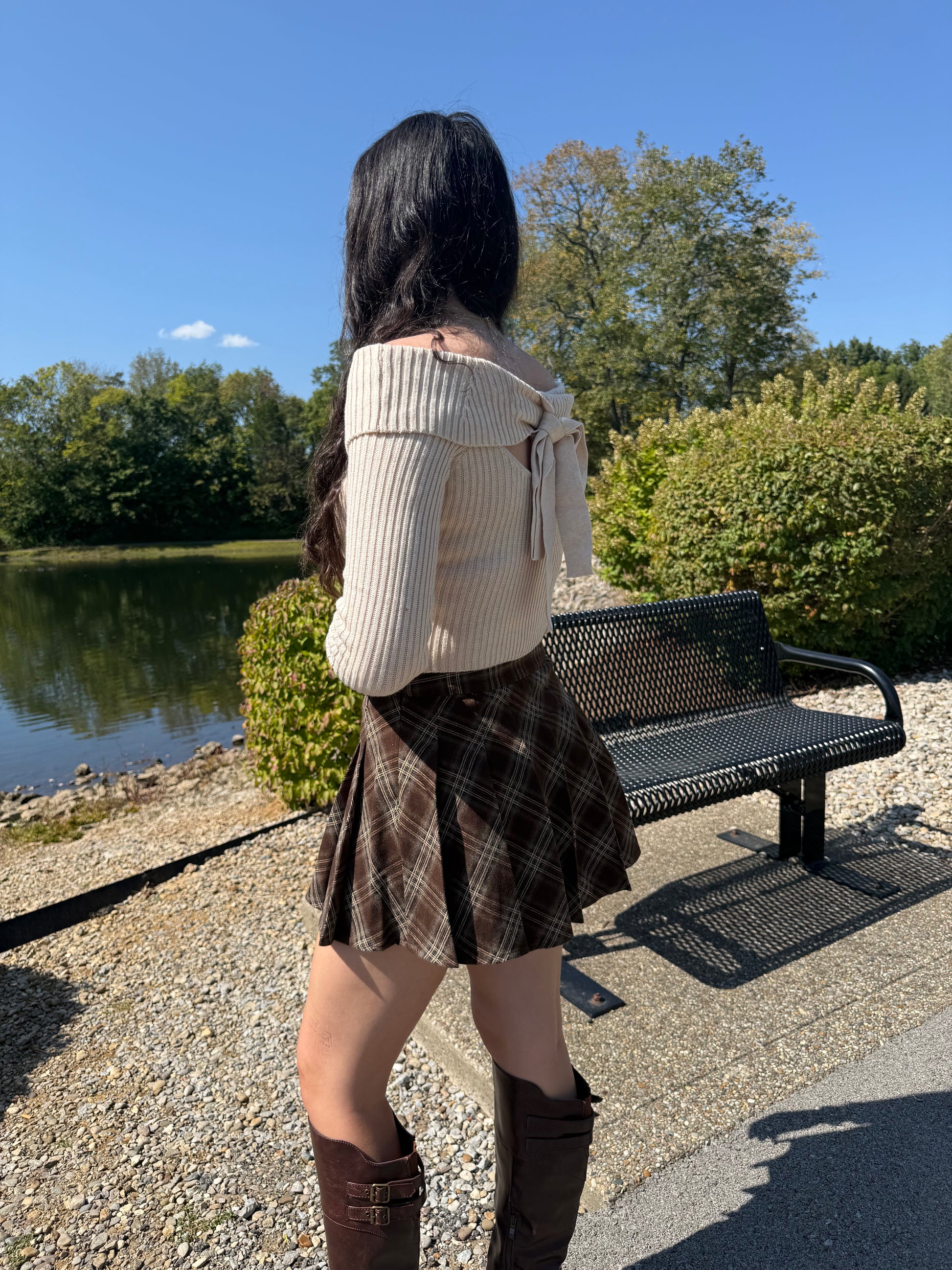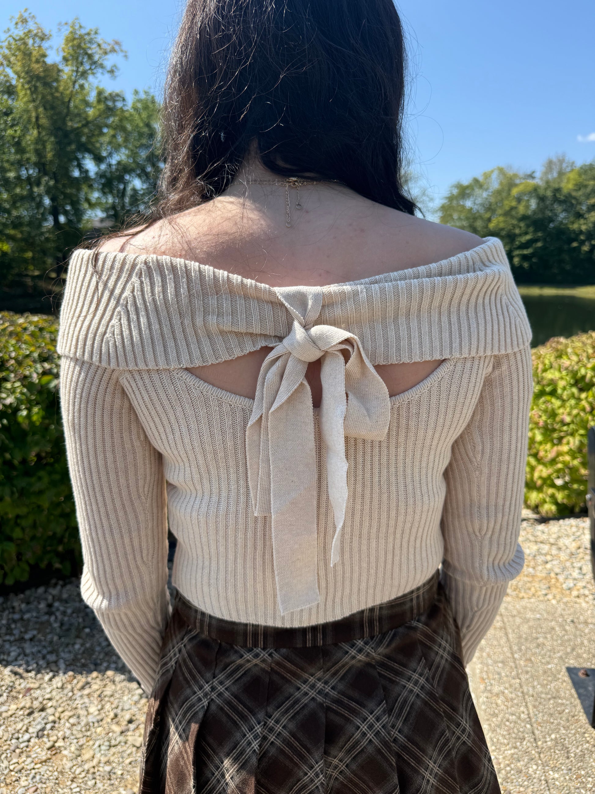 off the shoulder bar back ribbed sweater