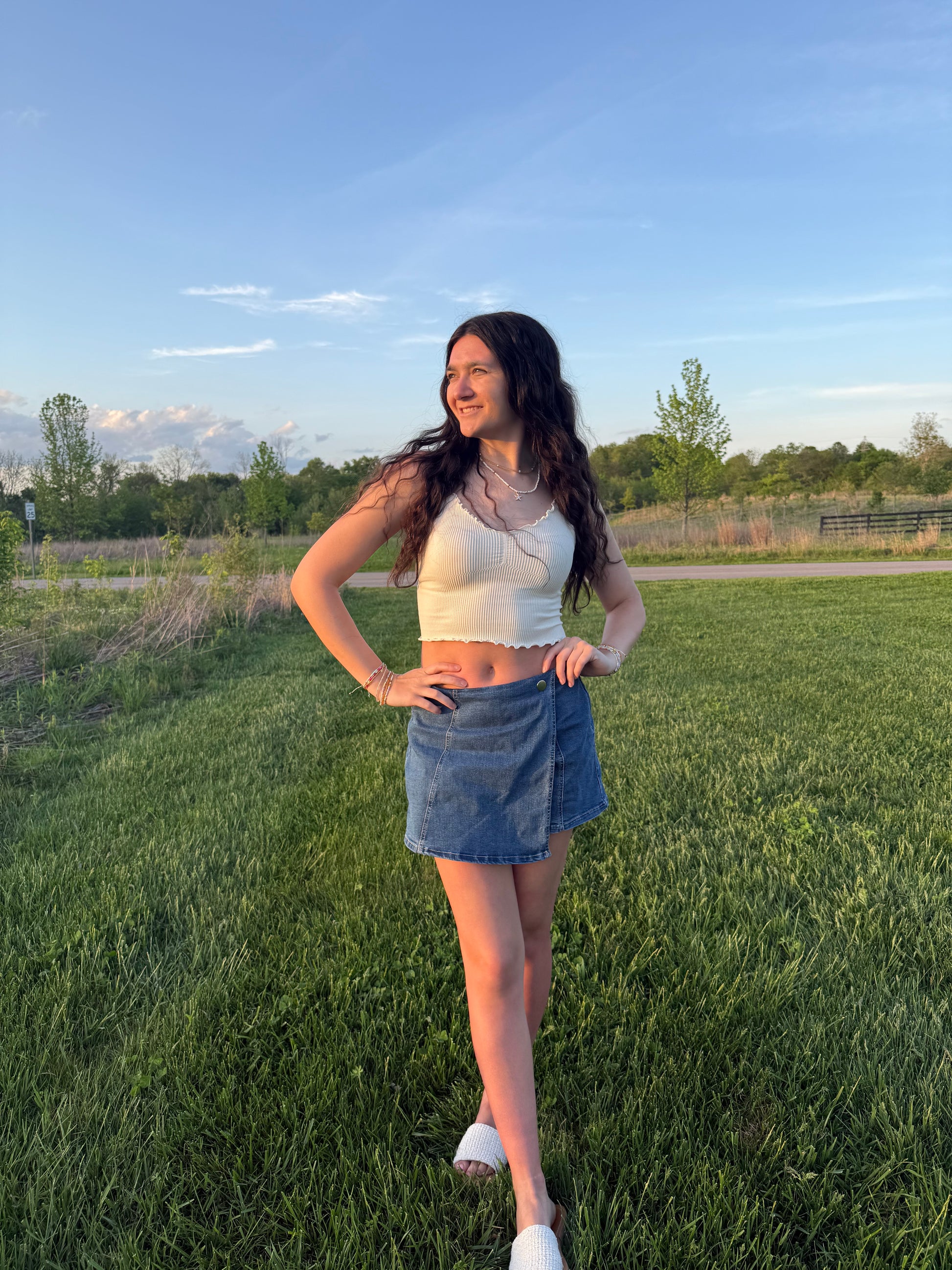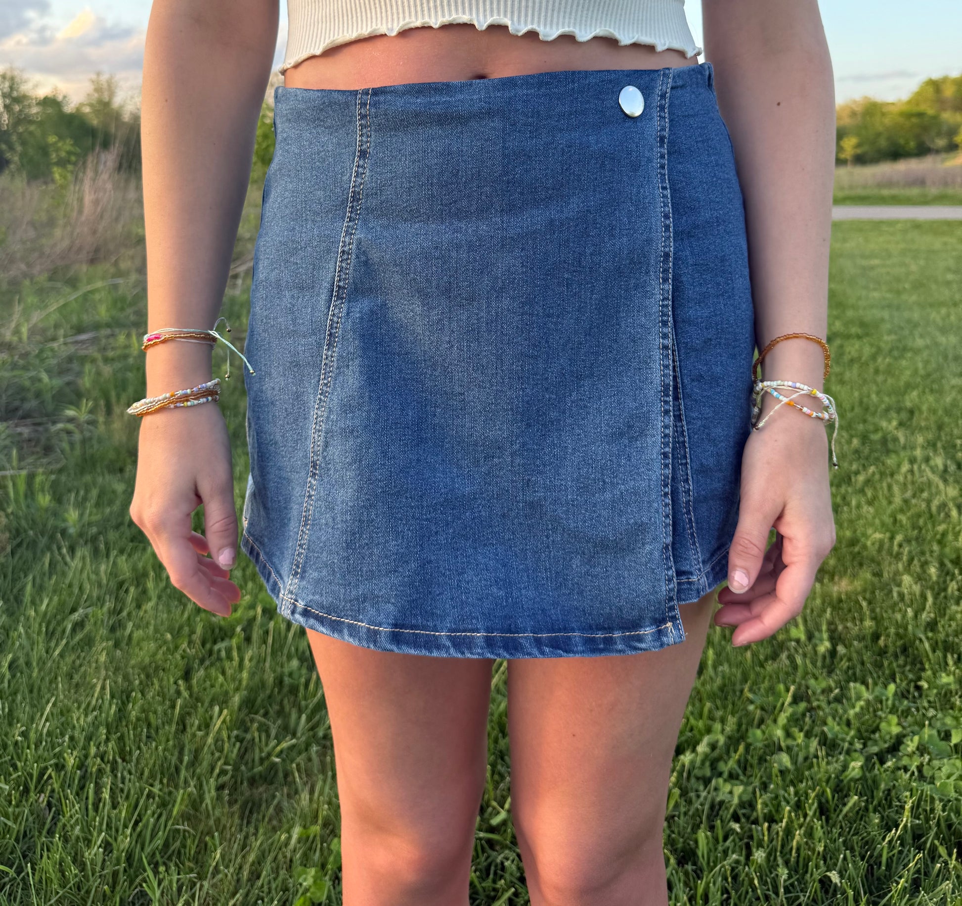 blue denim skort