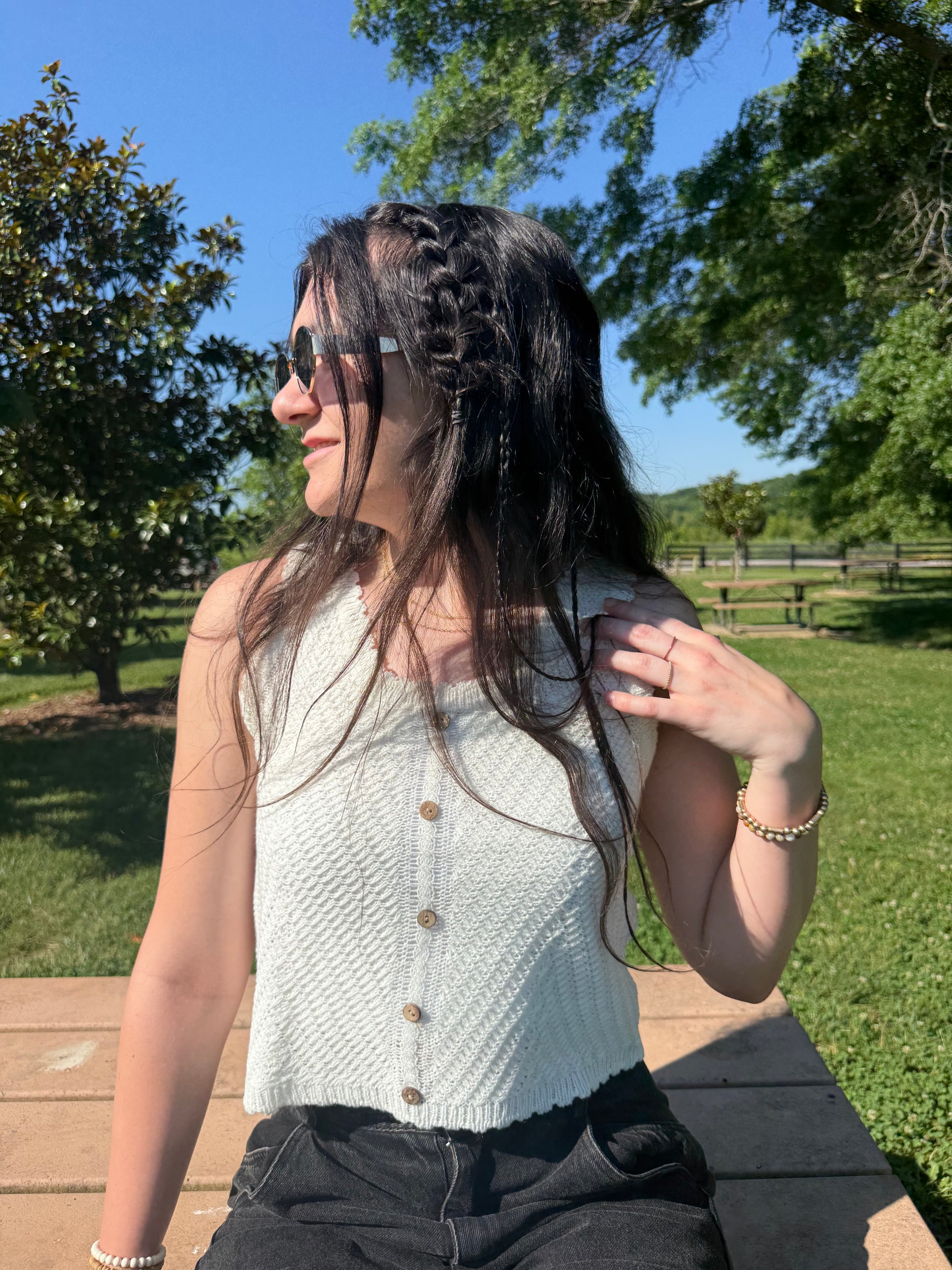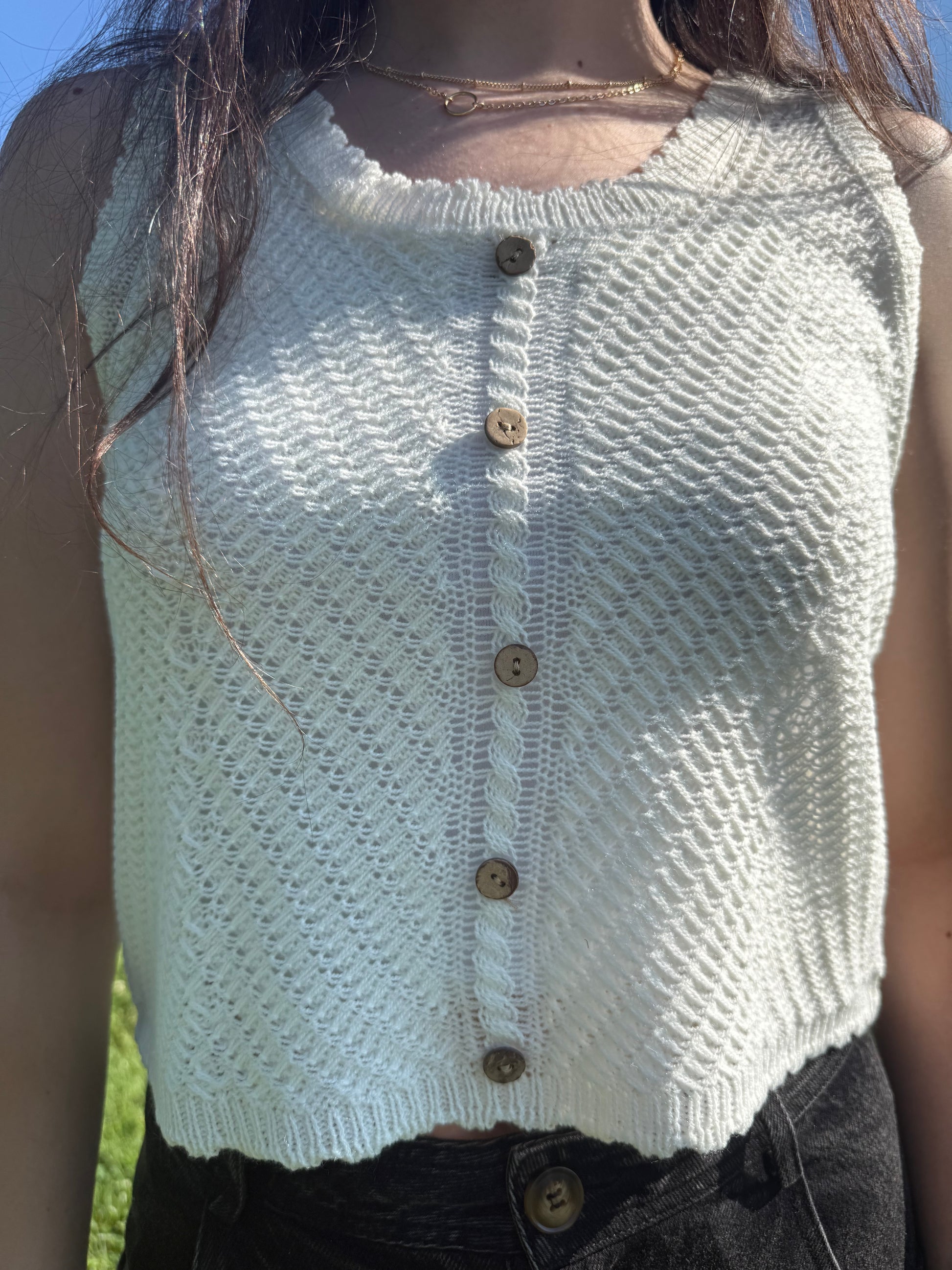 buttoned front crocheted tank top