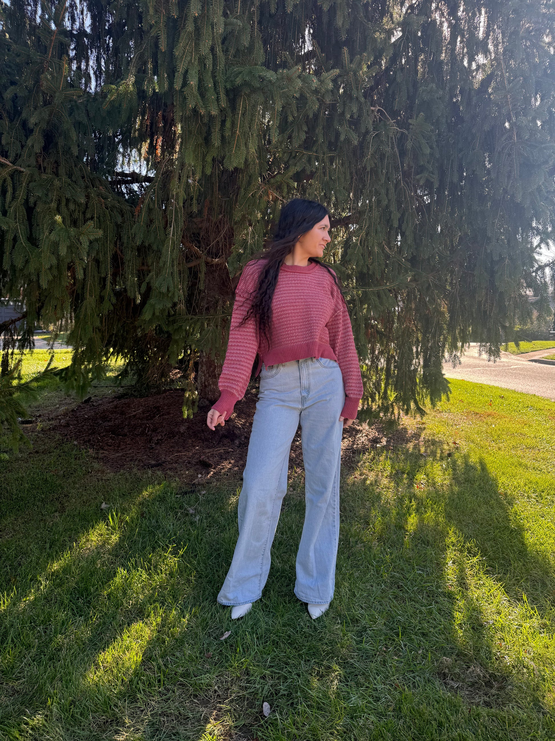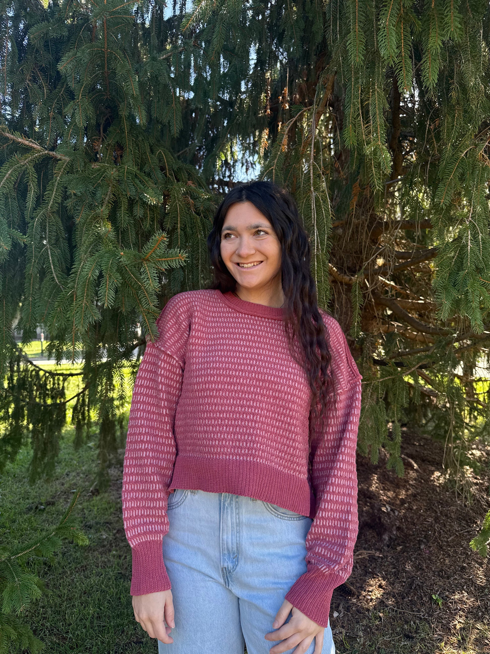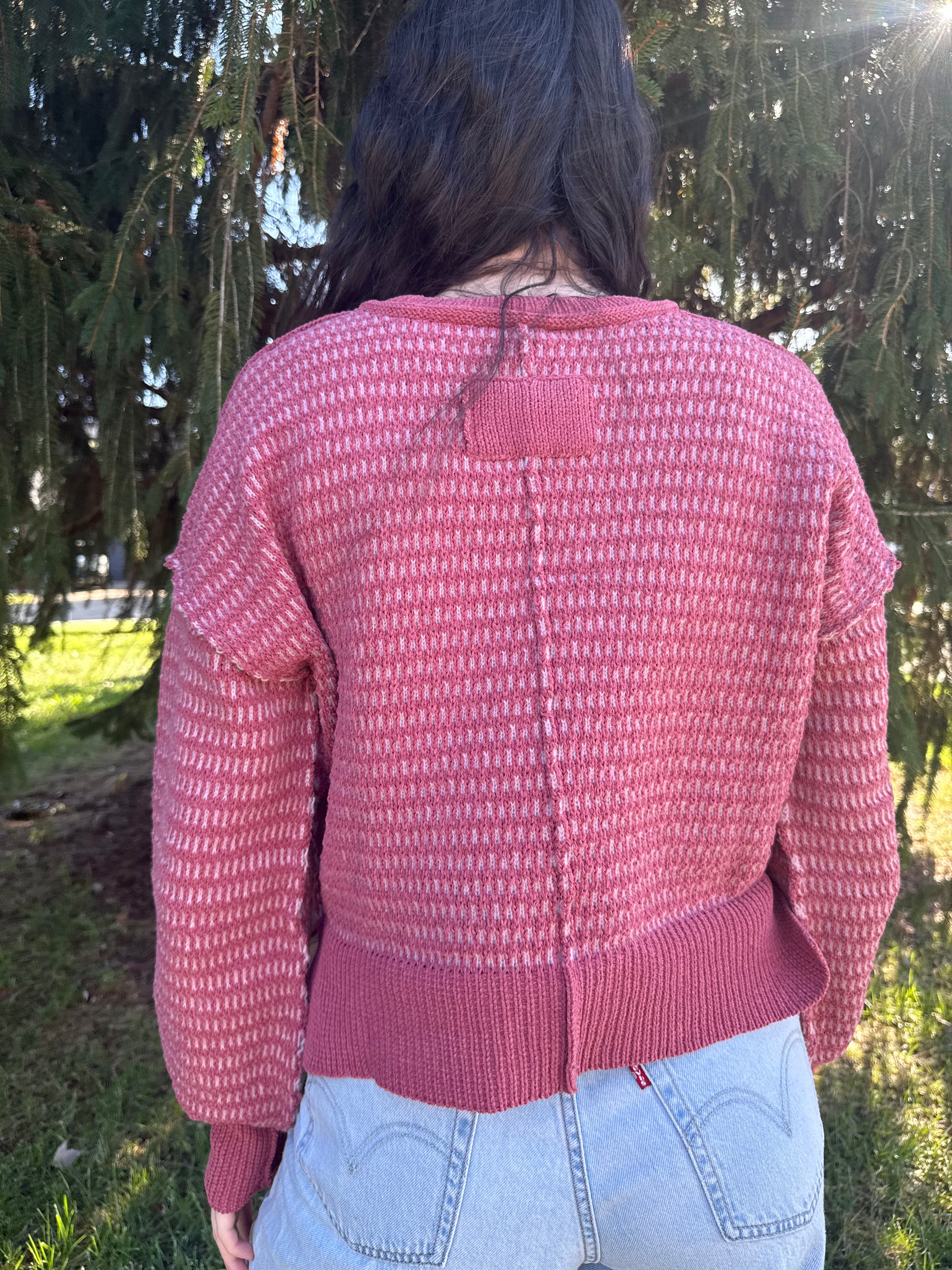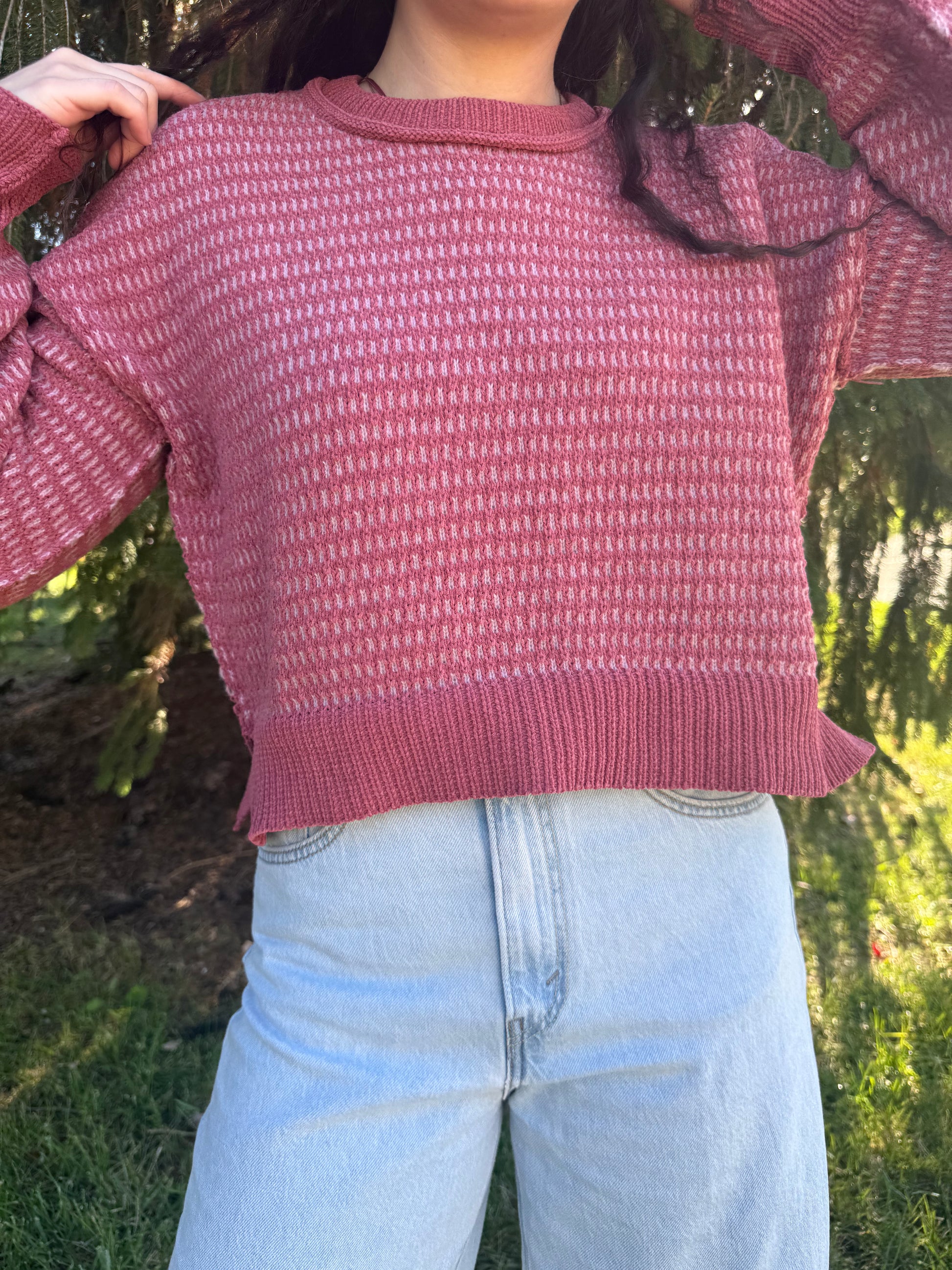 two tone textured knit casual sweater top